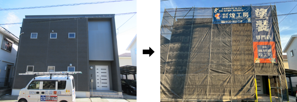 📸【現況写真 → 足場設置後】