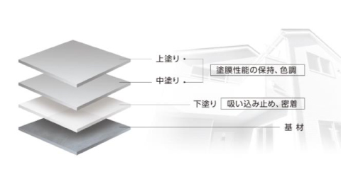 上塗材・中塗材が複数の役割(耐候性・耐久性・色調・艶など)を兼備するため、工程数が少なくて済む。