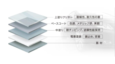 工程別に役割を分担し、最後に耐候性と強度の高いクリヤー塗装を施すことで下地を保護。