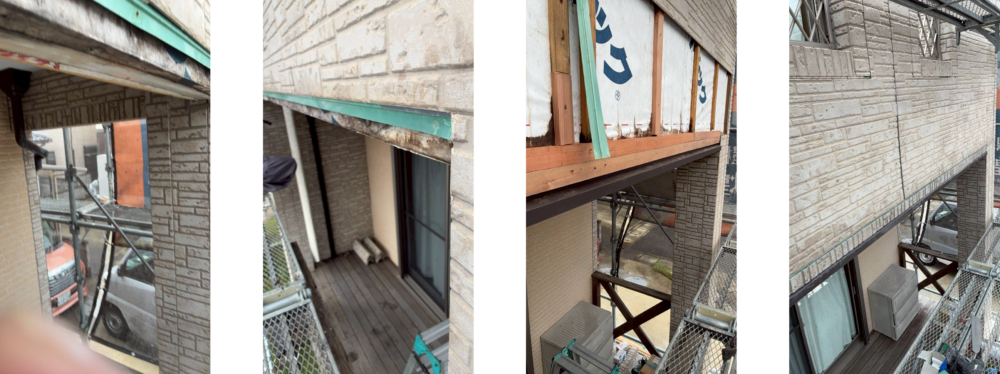 過去に一部補強されていましたが、再び浮きが見られたため、今回はオーバーハングの取付けをご提案しました。