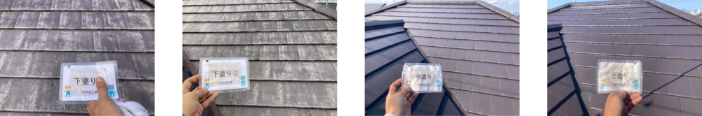 6. 屋根塗装の施工方法(モニエル瓦:下塗り→下塗り→中塗り→上塗り)
