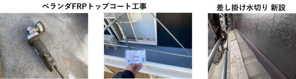 付帯部(ベランダFRPトップコート工事、差し掛け水切り 新設)