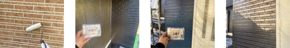 外壁塗装(下塗り → 中塗り → 上塗り・塗分け部分は4回塗り)