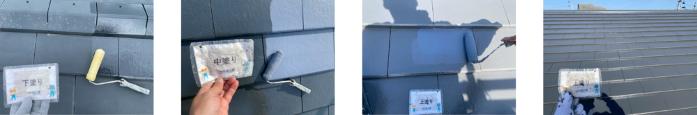 屋根塗装(下塗り → 中塗り → 上塗り)