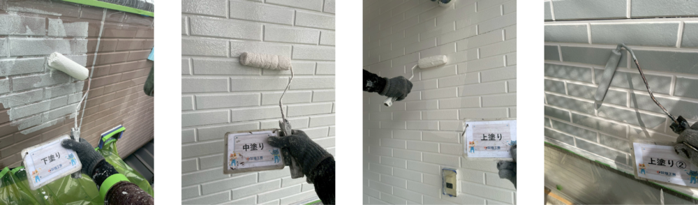 前回塗装の際は一色の塗りつぶしでしたが、今回は意匠性を考慮して目地塗分けの二色塗りで高級感を演出しました。
